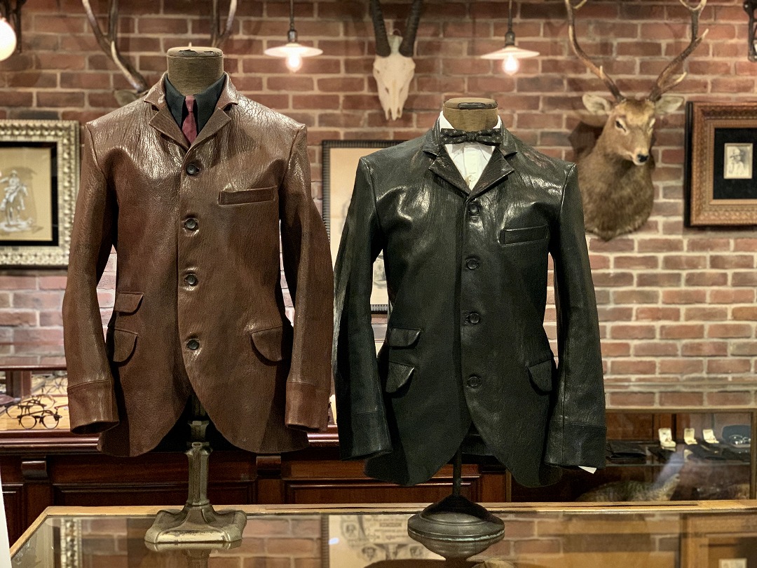 昨日、本日と、愛知では暑い日が続いております。ですが... Main Lodge 店内は新作の入荷とともに、しっかり秋冬模様です。Tシャツなども引続き店頭にございますので、こちらもまだまだご覧下さいませ。さて、本日は少し新作をお休みしてお勧めアイテムのご紹介です。気温で言いますとまだ少し暑いですが、レザーの季節が近づいております。"Wild Goat Butler Jacket"ワイルド・ゴート・バトラー・ジャケット。ブラックサインのアイコンの一つ、バトラー・ジャケットをゴートスキンで製作した名作とも言える一着。カラーは、アンティック・ブラックとアンティック・ブラウンの2色展開です。レザーは1.2mmまですいたワイルド・ゴートを使用し、表面にはスペシャルオーダーのアンティック仕上げを施しております。この独特なシボ感と怪しいツヤ感がなんとも言えない空気感を漂わせる、抜群の仕上がりです。ヴィクトリア時代のディテールを継承しております。カチッときめてそれらしくご着用頂いても良し、ジーンズにサッと羽織れば程よいカジュアルさでもお楽しみ頂けます。ボタンはリアル・ホーン、裏地は袖の通りがよく着やすいポリエステルを使用しております。秋の様々なシーンにて活躍するレザージャケットです。是非お試し下さいませ。皆様のご来店・ご利用、お待ち致しております。明日は水曜日ですので、定休日となります。何卒宜しくお願い致します。BLACK SIGN _ Tanaka