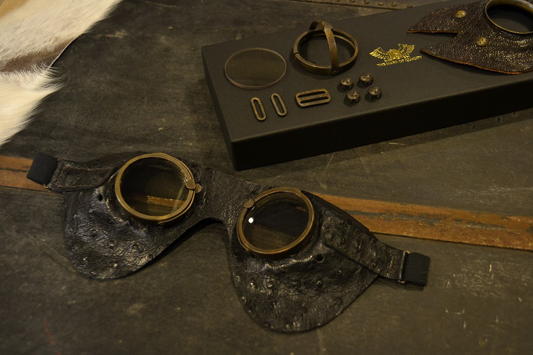 BLACK SIGNブランド10周年、MOM&POP開店20周年を迎え新たな一歩を踏み出した8月1日より当店、BLACK SIGN Main Lodge (名古屋) 限定にてこちらをご用意しております。-10pcs Limited Model-kimo-G Optical Goggle "Ostrich"2019SSコレクションにて発表したオプティカル・レザーゴーグル"kimo-G"この度は「オーストリッチ・レザー」にて限定モデルを製作いたしました。8月1日 販売開始数量は限定10個価格は\78,000+TaxBLACK SIGN Main Lodge (名古屋) 店頭のみ限定販売となります。※通信販売は不可となりますこちらのオーストリッチレザーは、個体それぞれが異なる表情を持っています。オーストリッチ特有のクイルマークが不均一なもの、クイルマークが片側だけに入りグラデーションの様になった左右アシンメトリーなもの、中にはレッグと呼ばれる部位を使用し、まるでリザードレザーをも思わせる独特な個体もご用意しております。レザーの裁断を終えた時点にてご用意しておりますので、先着順にお好きな表情のレザーをお選び下さいませ。革の選定という一工程を皆さま自身で行っていただき、完成する逸品です。レザーをお選びいただいた後、ハンドメイドにてパーツをお取り付けいたします。お渡しは仕上がり次第ご連絡させていただきますので、今しばらくお待ち下さい。皆さまのご来店、スタッフ一同お待ちいたしております。BLACK SIGN _ Tanaka