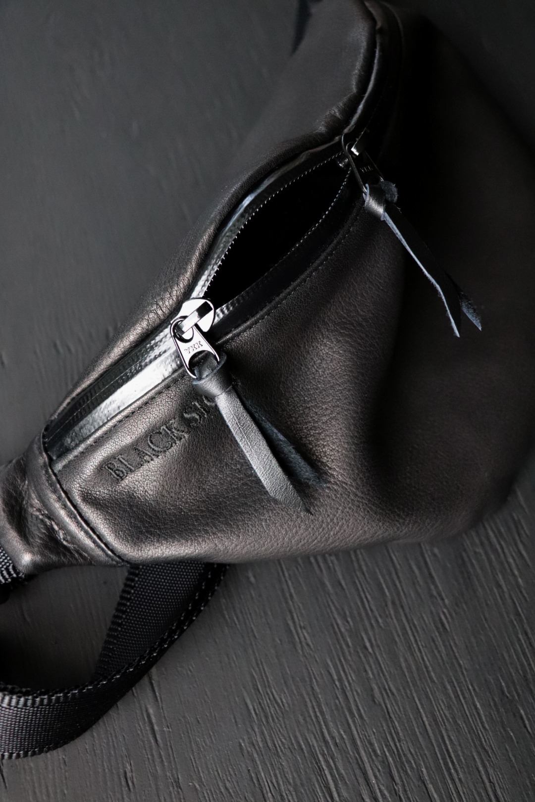 レザーに止水ジッパー・ナイロン素材など異素材の組み合わせや、潜むかのようなブラックの刺繍などBLACK SIGNらしいデザインも魅力です。