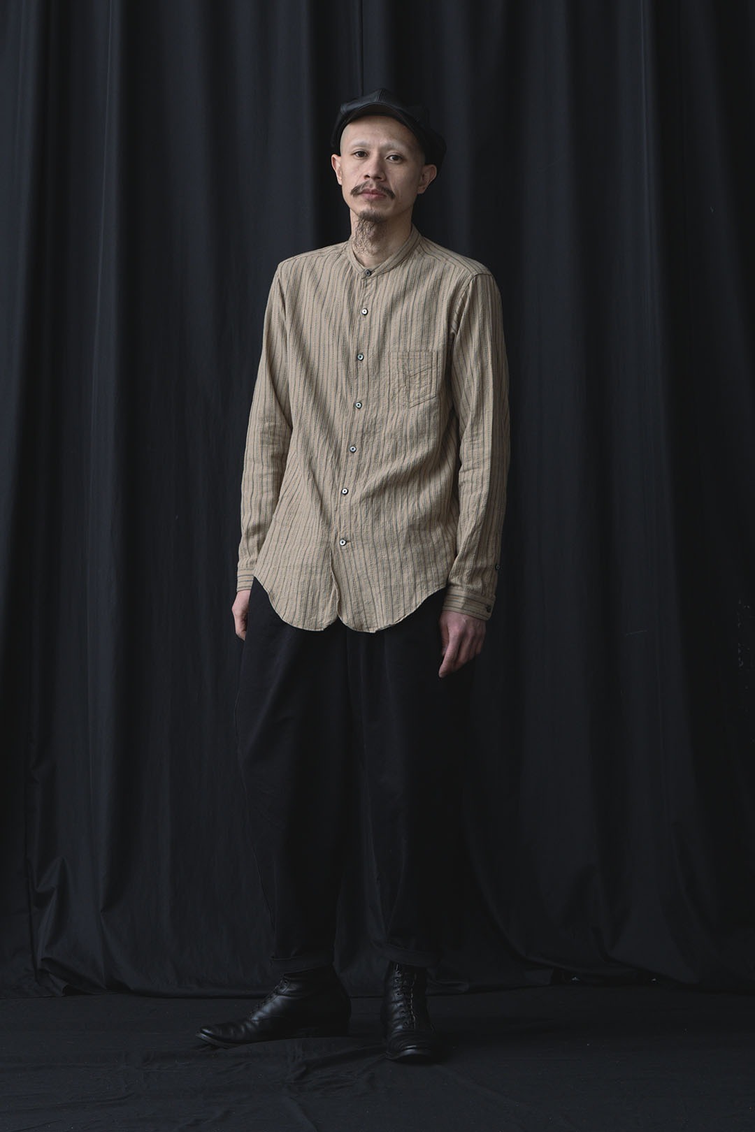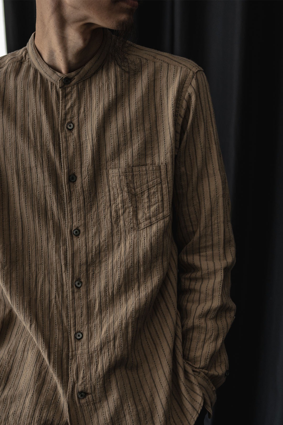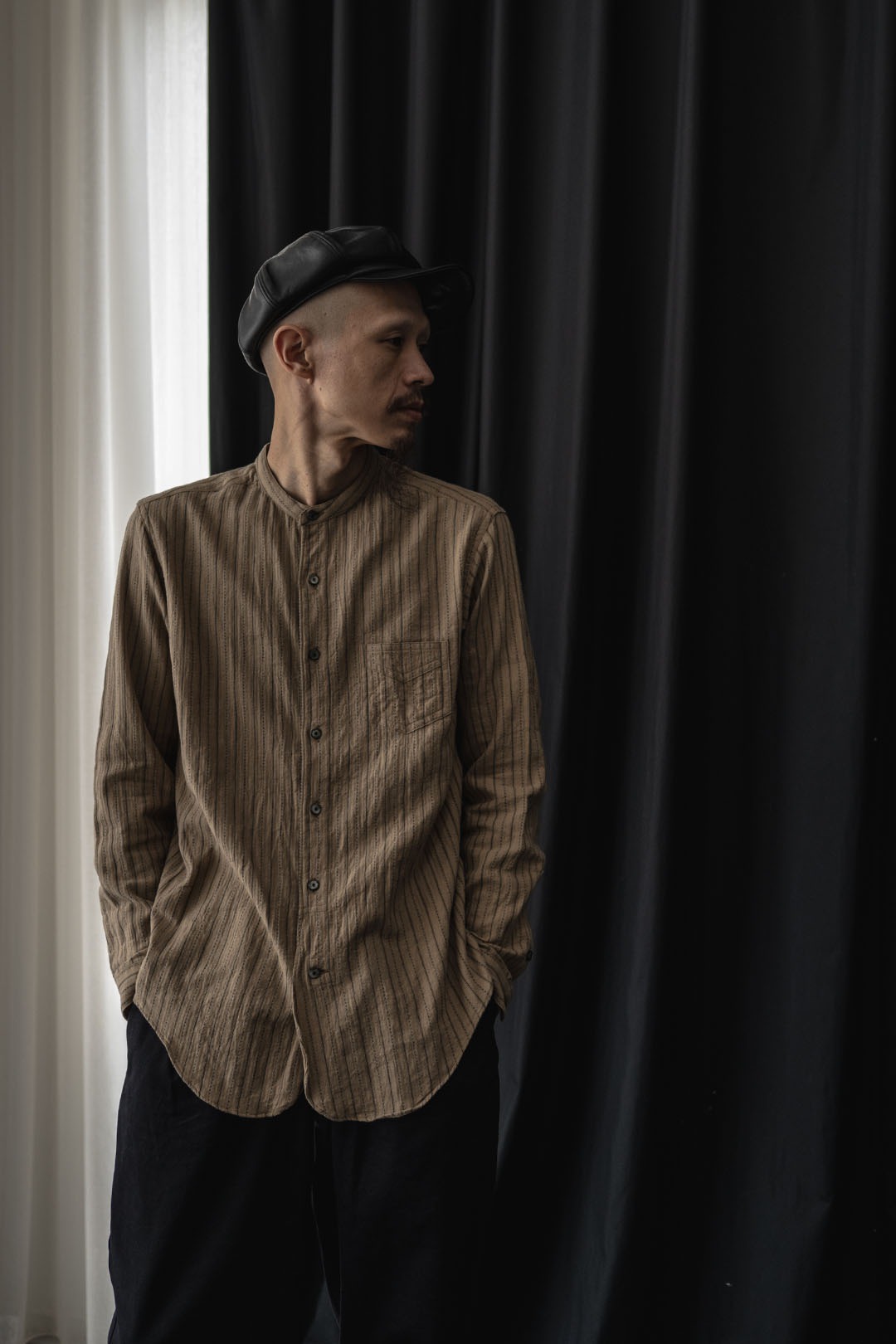 デザインは、一世紀以上前のシャツをベースに細かなディテールまで再現したバンドカラー・シャツ。