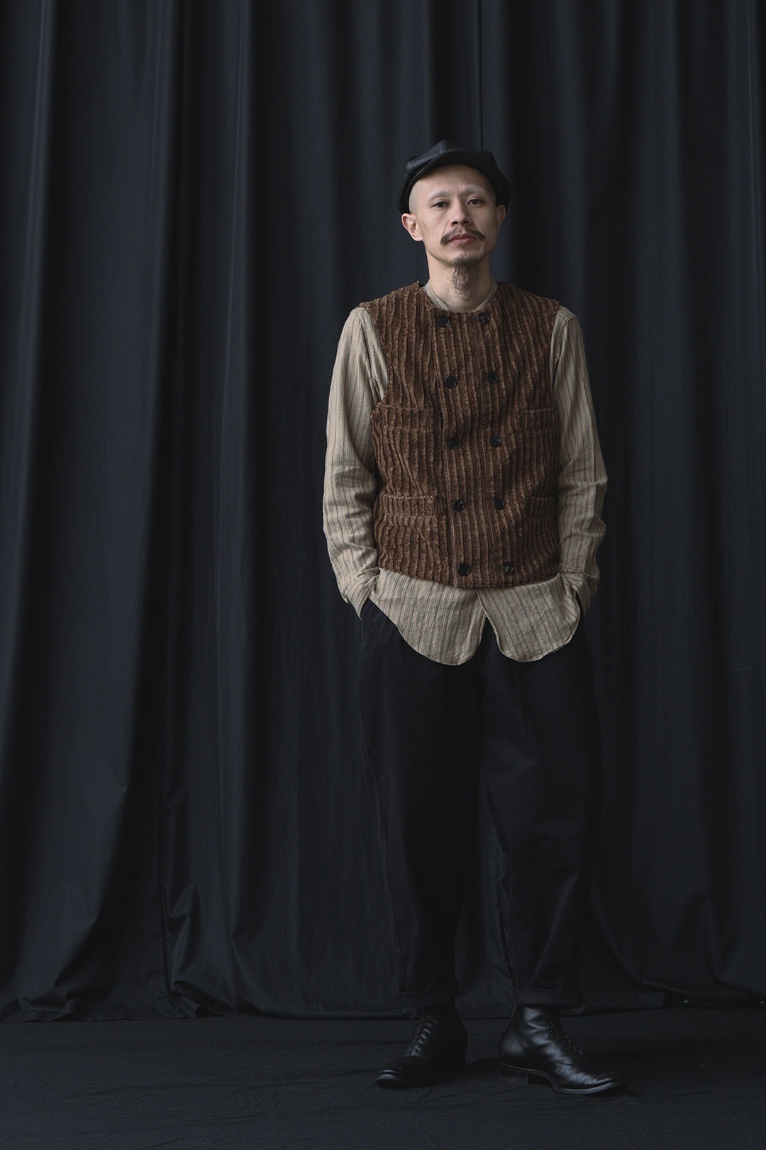 また、バックヨークに入るワン・ウェイのプリーツや細かなステッチ・ワークも隠れた拘りとなっております。