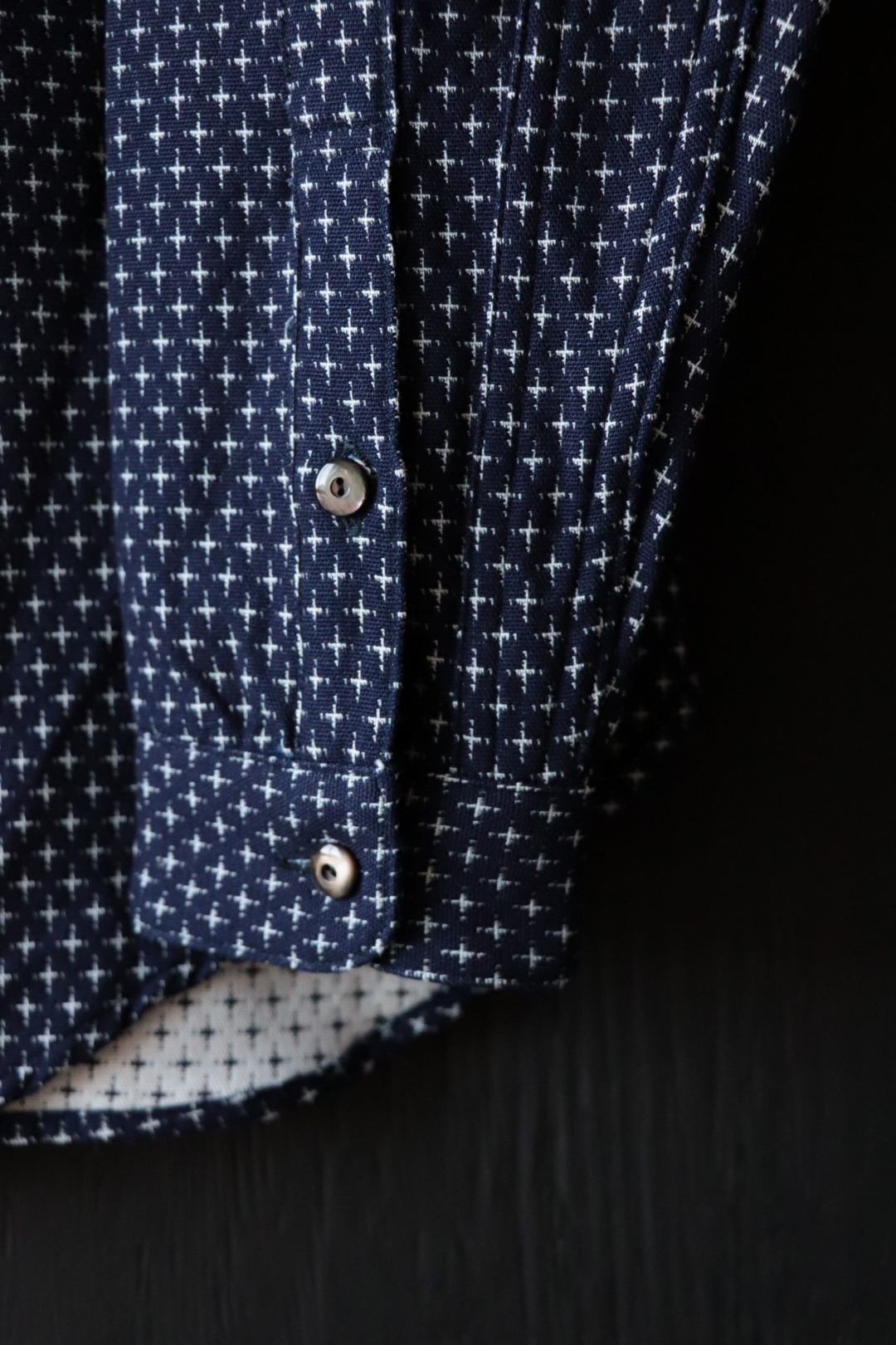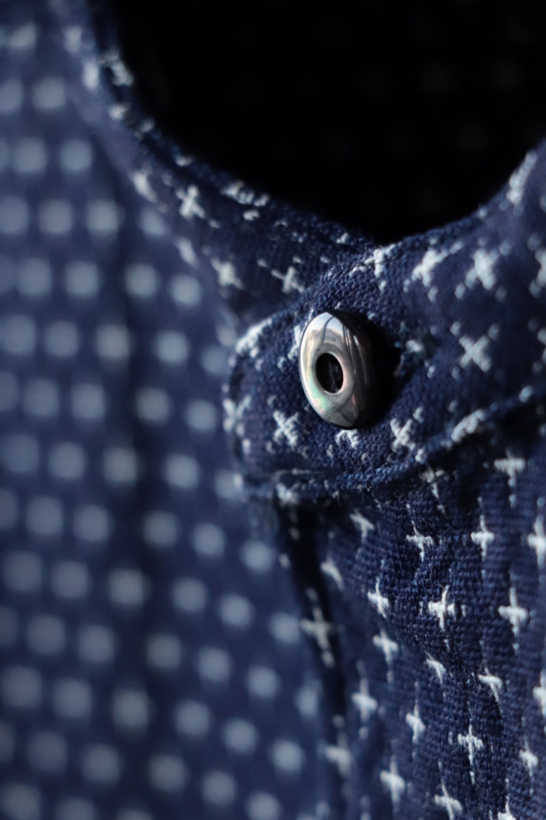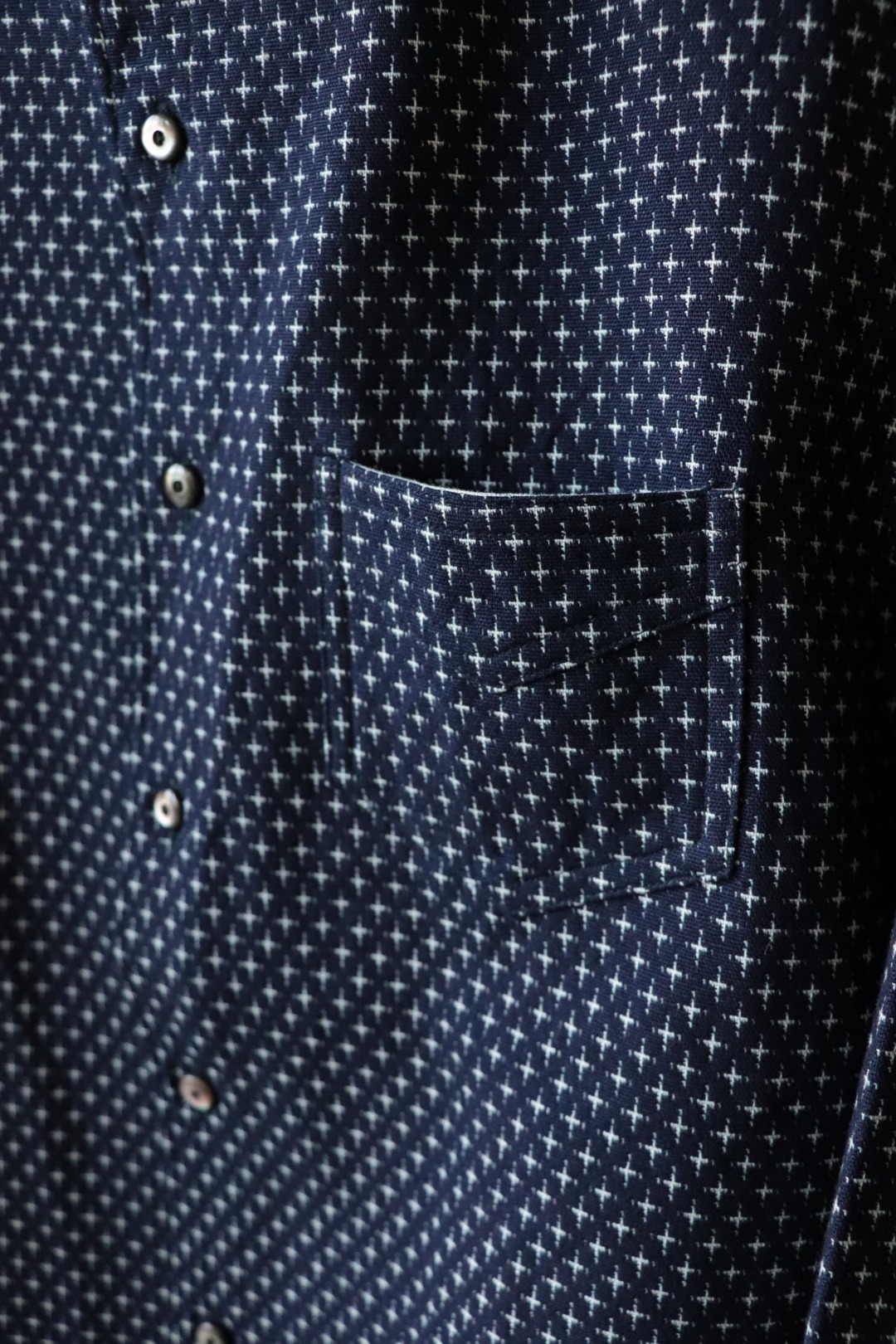 Jacquard Cross Band Collar Immigrant Shirt / Dark Indigo