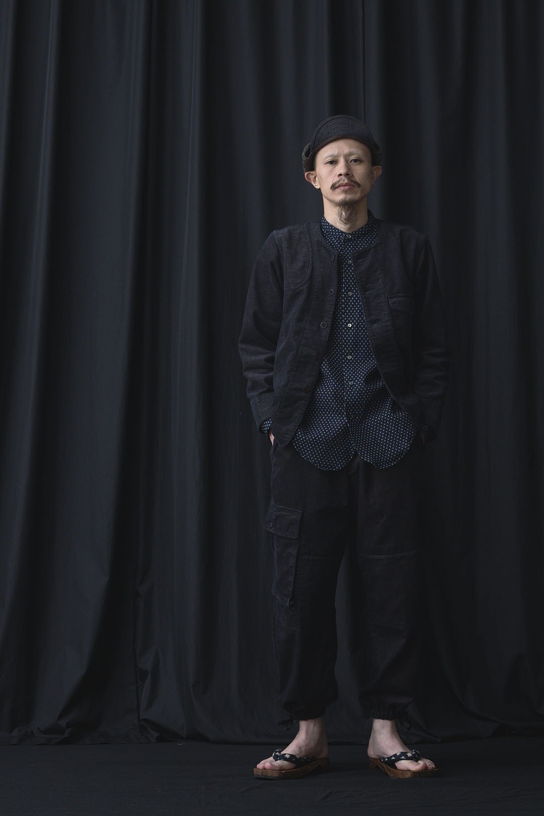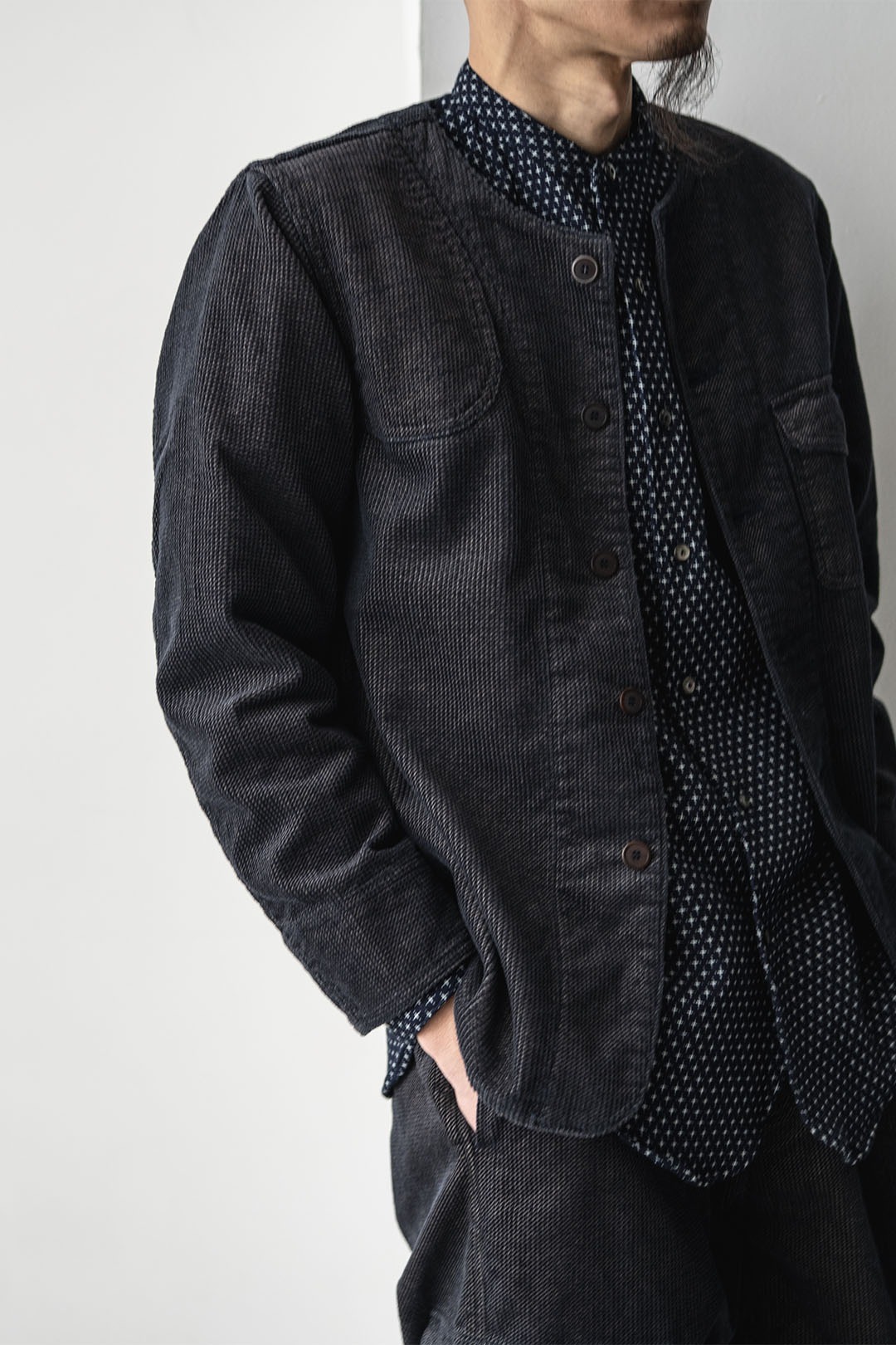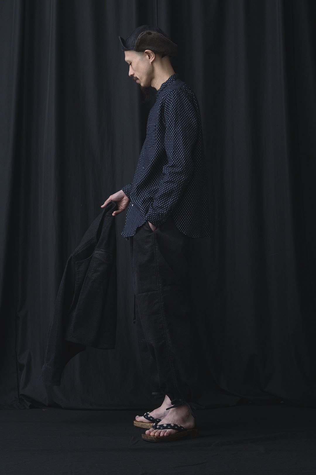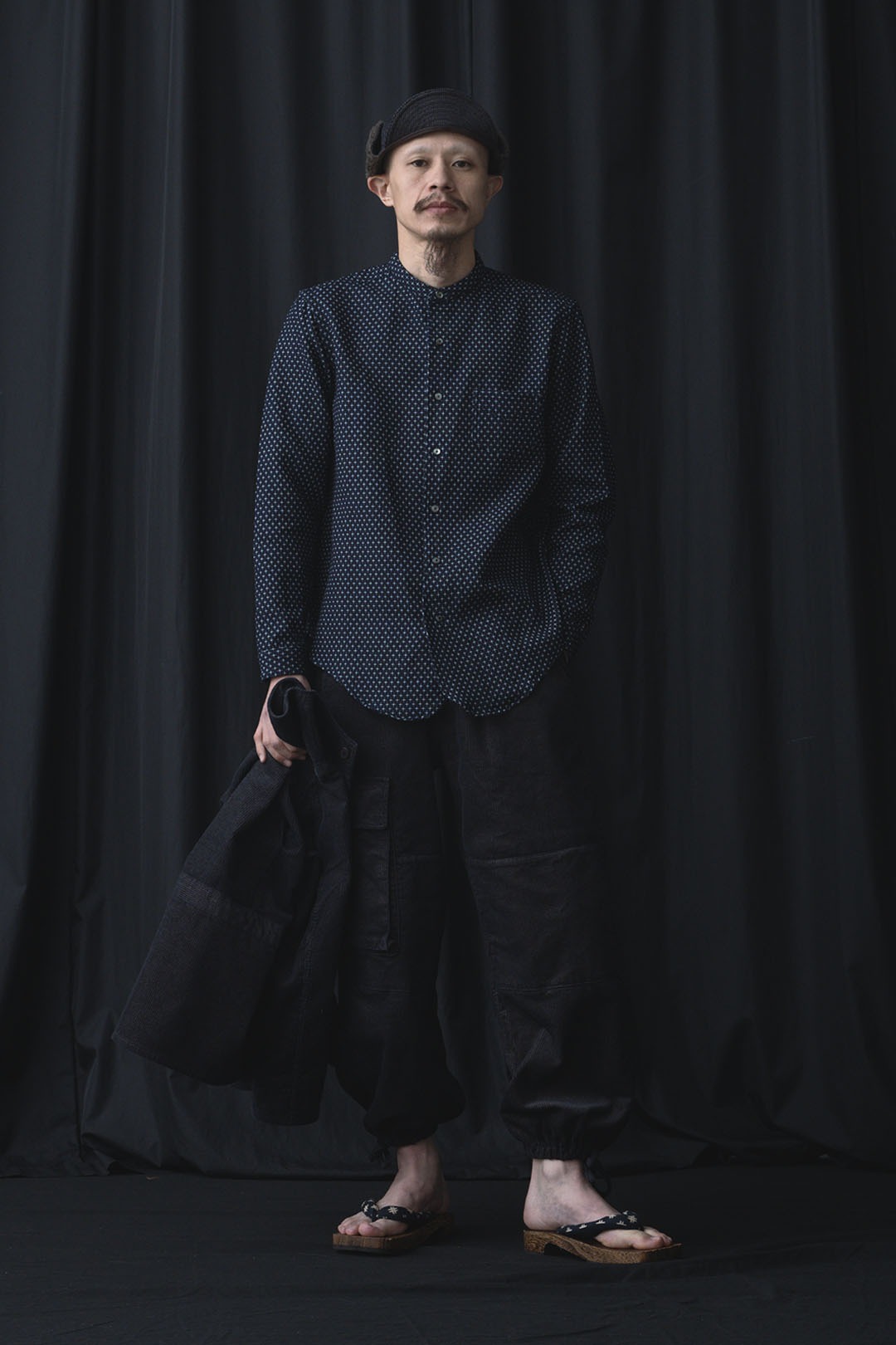 Jacquard Cross Band Collar Immigrant Shirt / Dark Indigo