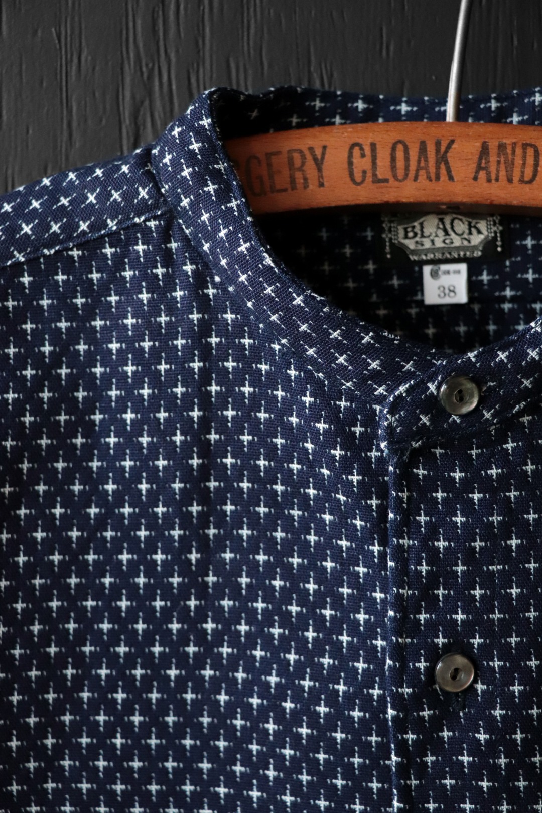ジャガード・クロス・バンド・カラー・イミグラント・シャツ。