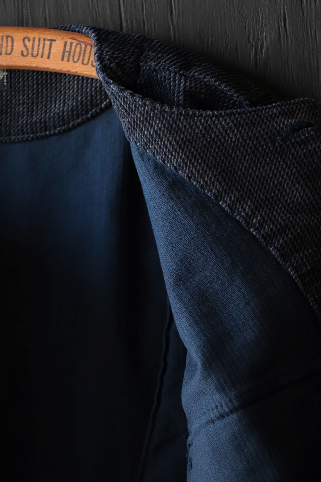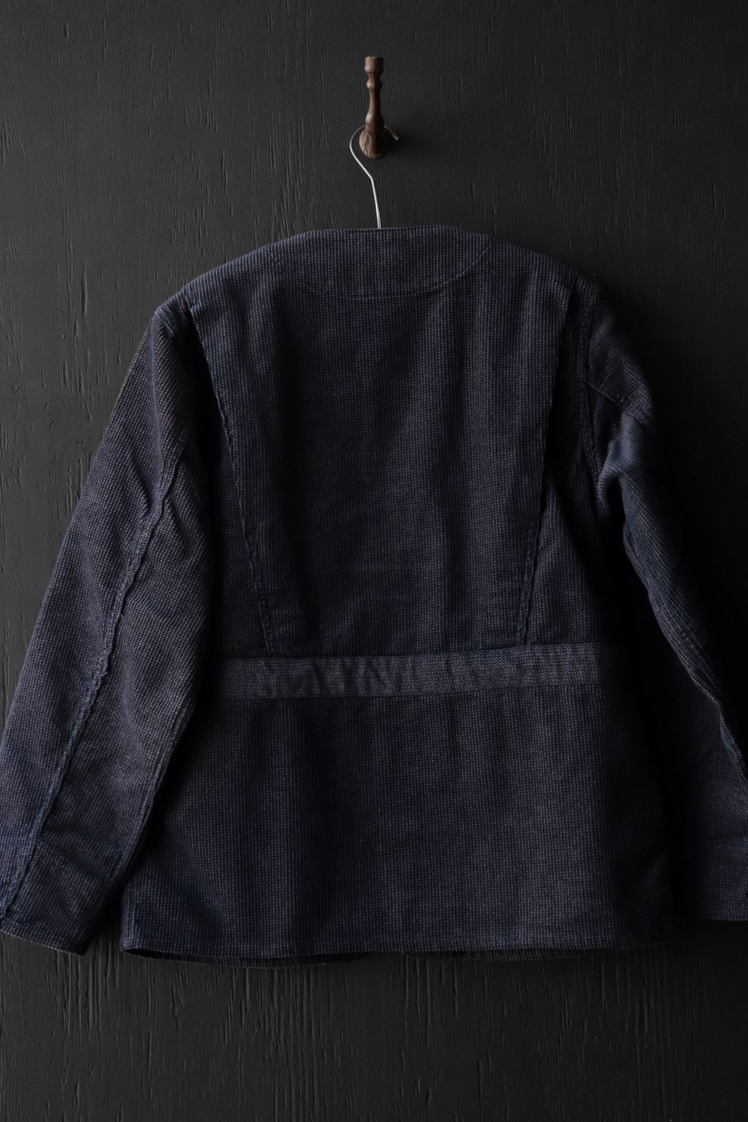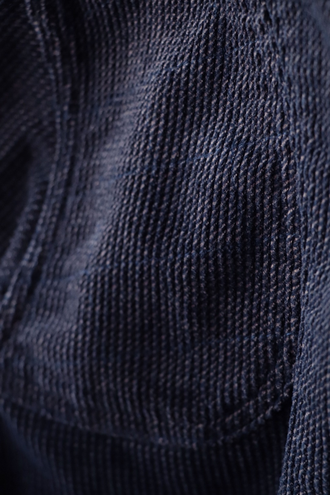 生地は特徴的な斜めのプリントが入るコーデュロイ。水面にゆれる漣や砂紋のような表情は風流な佇まいとなっております。