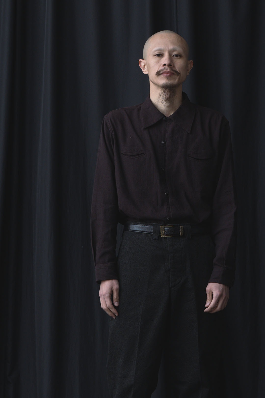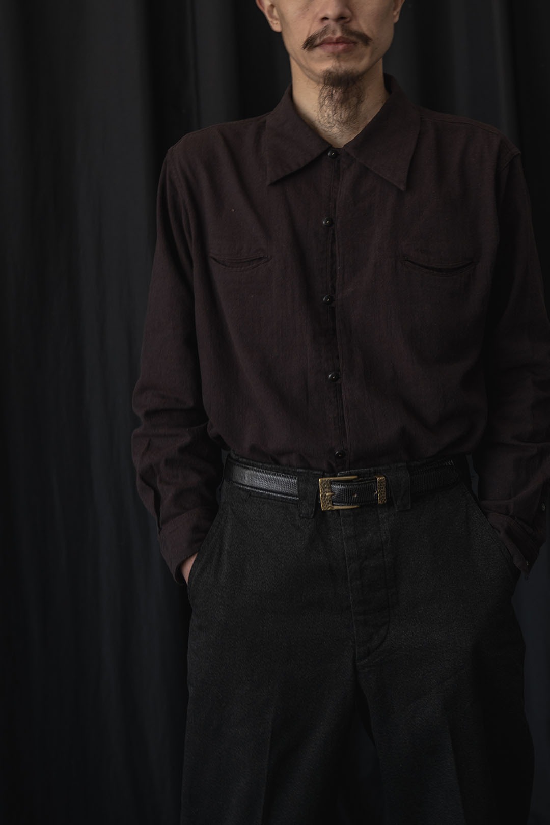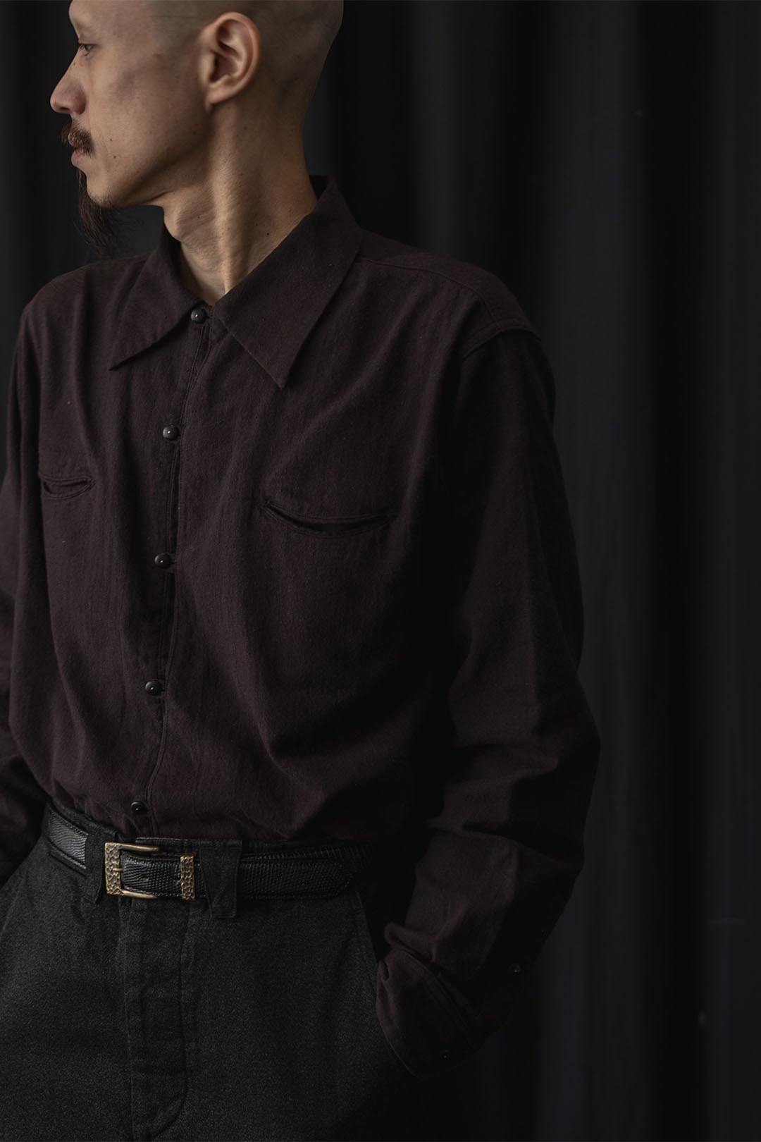1930年代のウエスタン・スタイル・プルオーバーシャツをベースに、フルオープンへとモディファイドしたウエスタンシャツです。