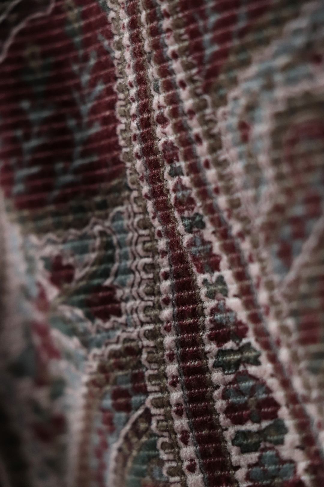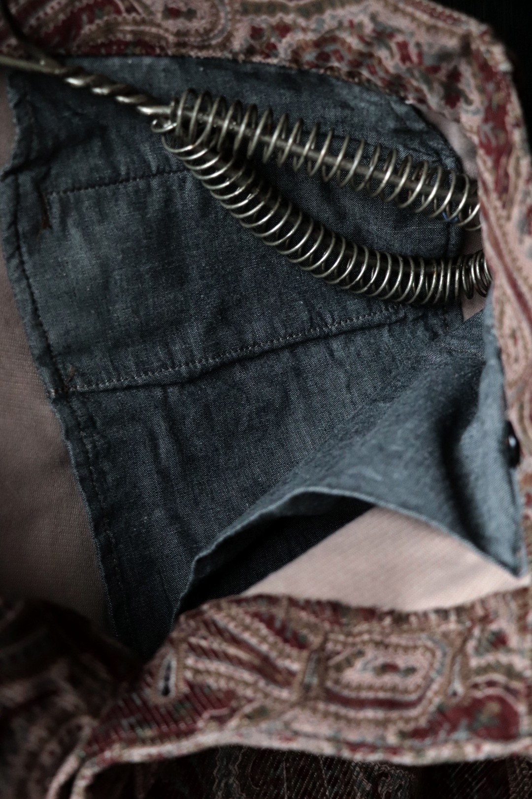 バイアス・コーデュロイにペイズリー柄をプリントした生地を使用。