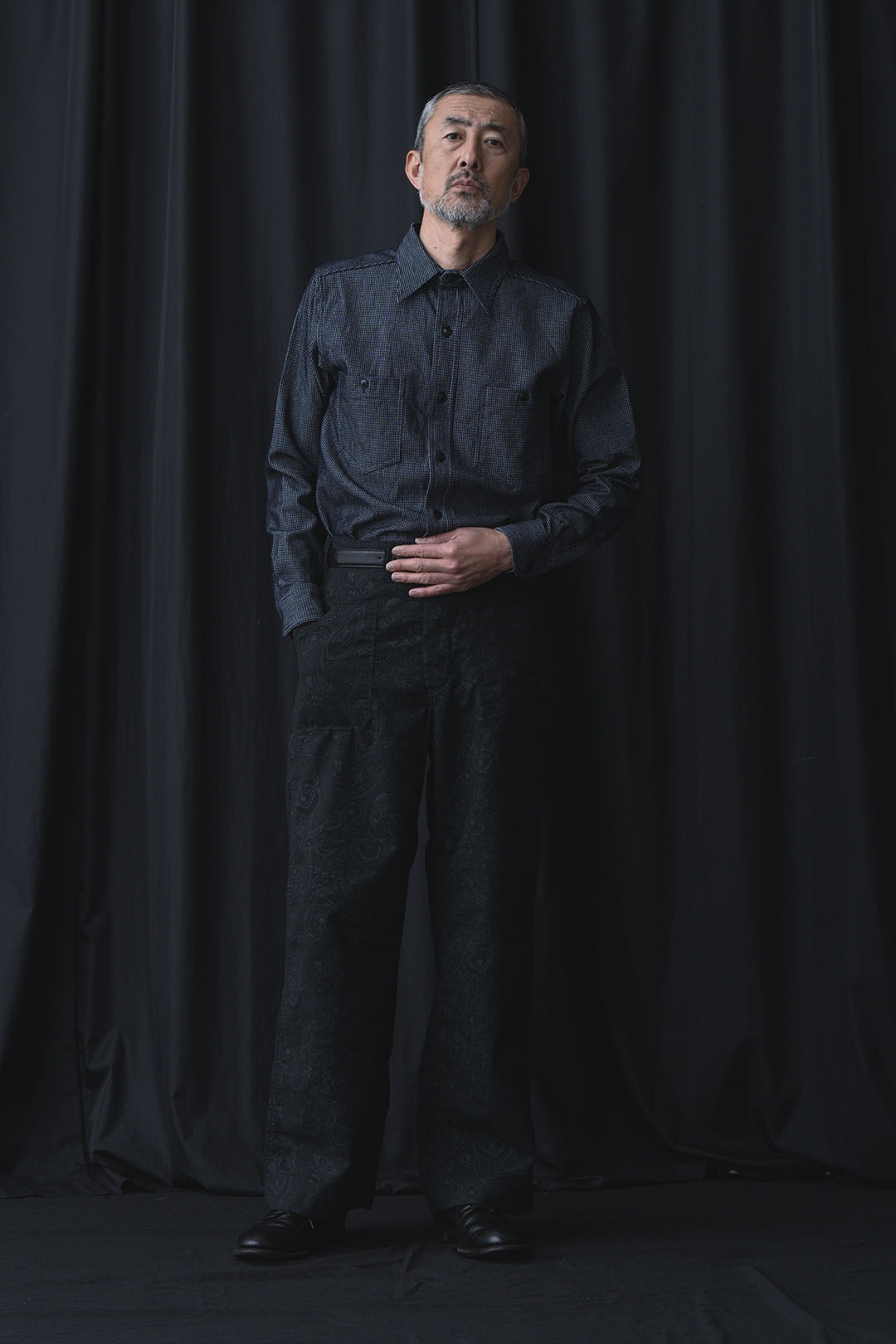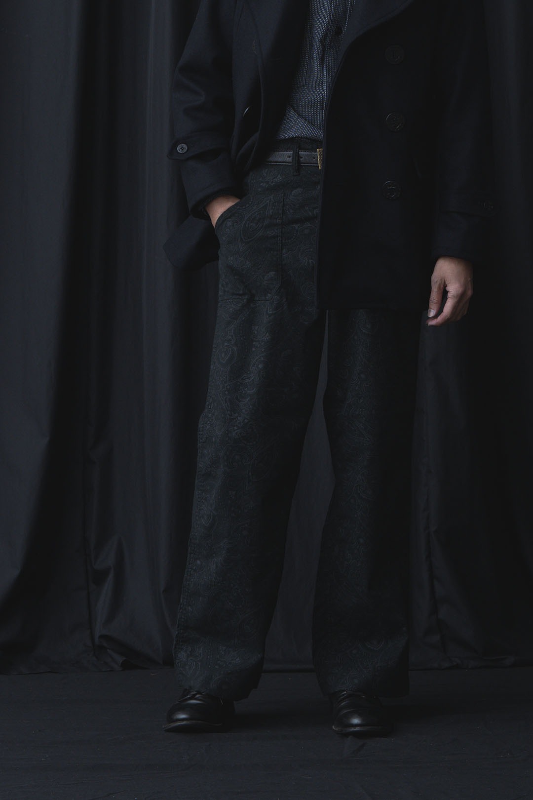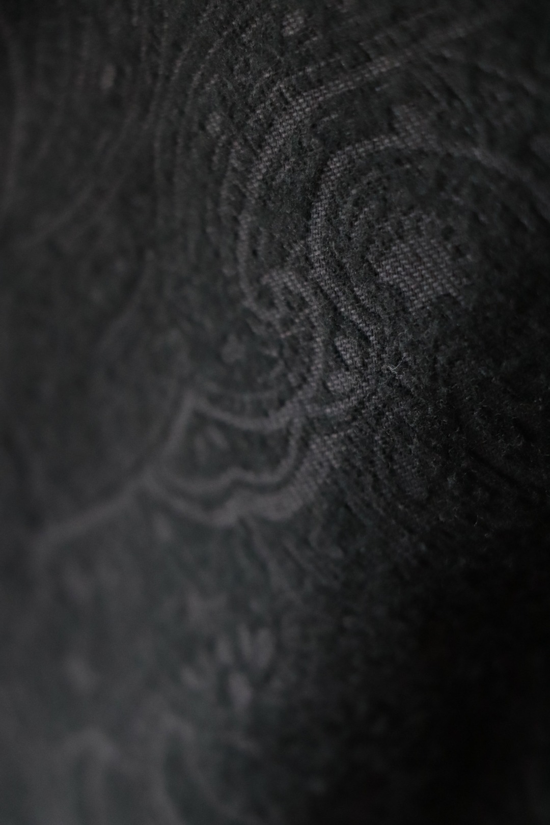 ペイズリー柄のコットン100%ビエラ起毛素材。部分的な柄起毛により、立体感を際立たせた表現を用いています。ペイズリーの総柄ながら単色で起毛により柄を表現しているため、派手ではなく上品な佇まいとなっております。肌触りの良い柔らかな生地感も特徴です。