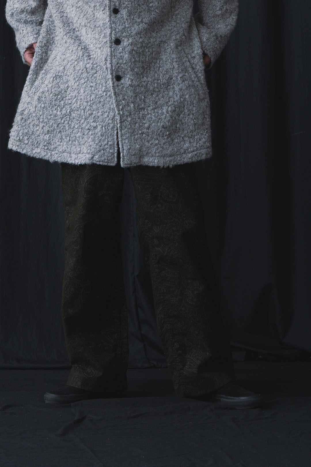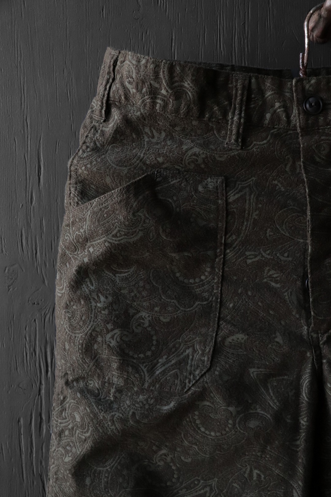 ペイズリー柄のコットン100%ビエラ起毛素材。部分的な柄起毛により、立体感を際立たせた表現を用いています。ペイズリーの総柄ながら単色で起毛により柄を表現しているため、派手ではなく上品な佇まいとなっております。肌触りの良い柔らかな生地感も特徴です。