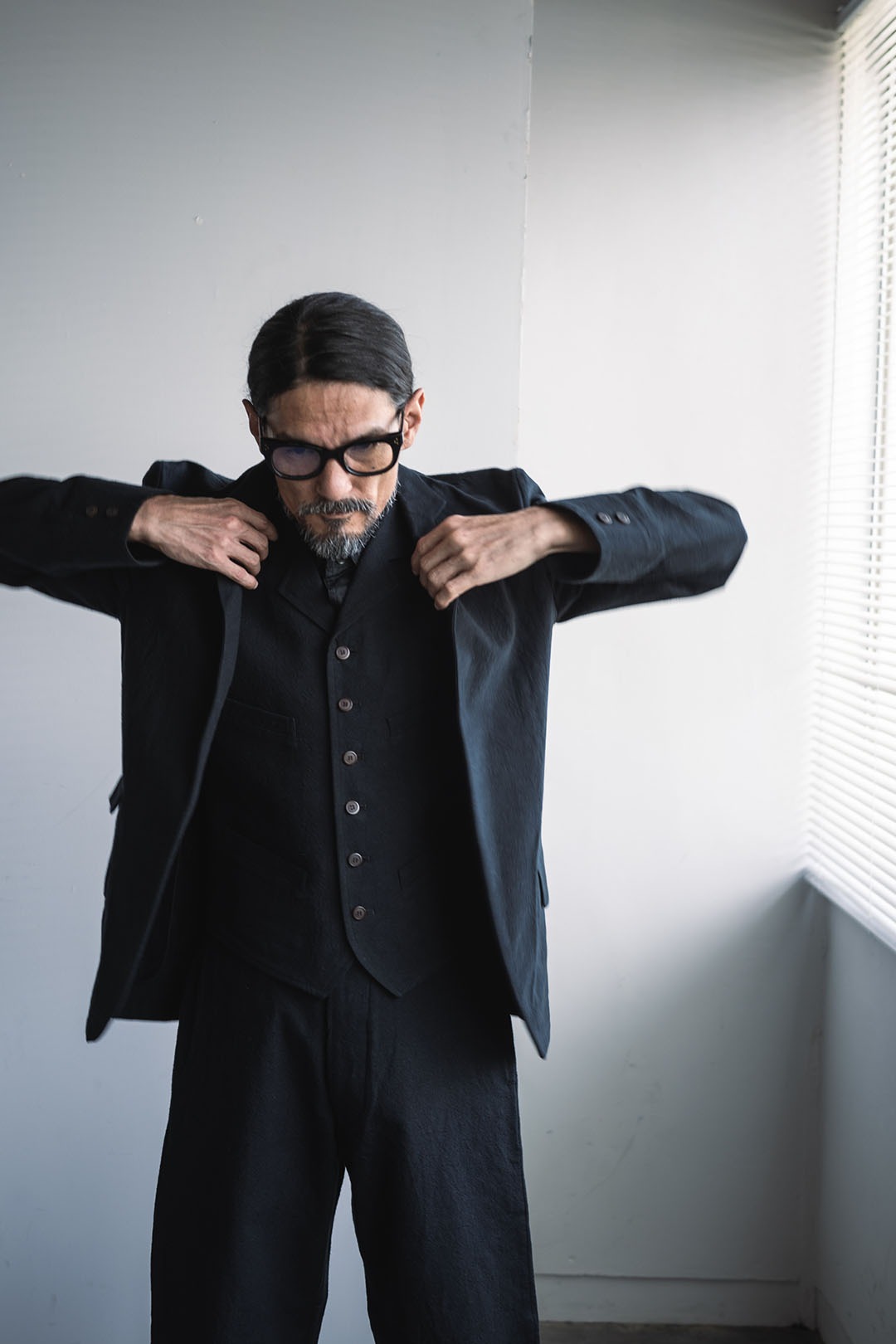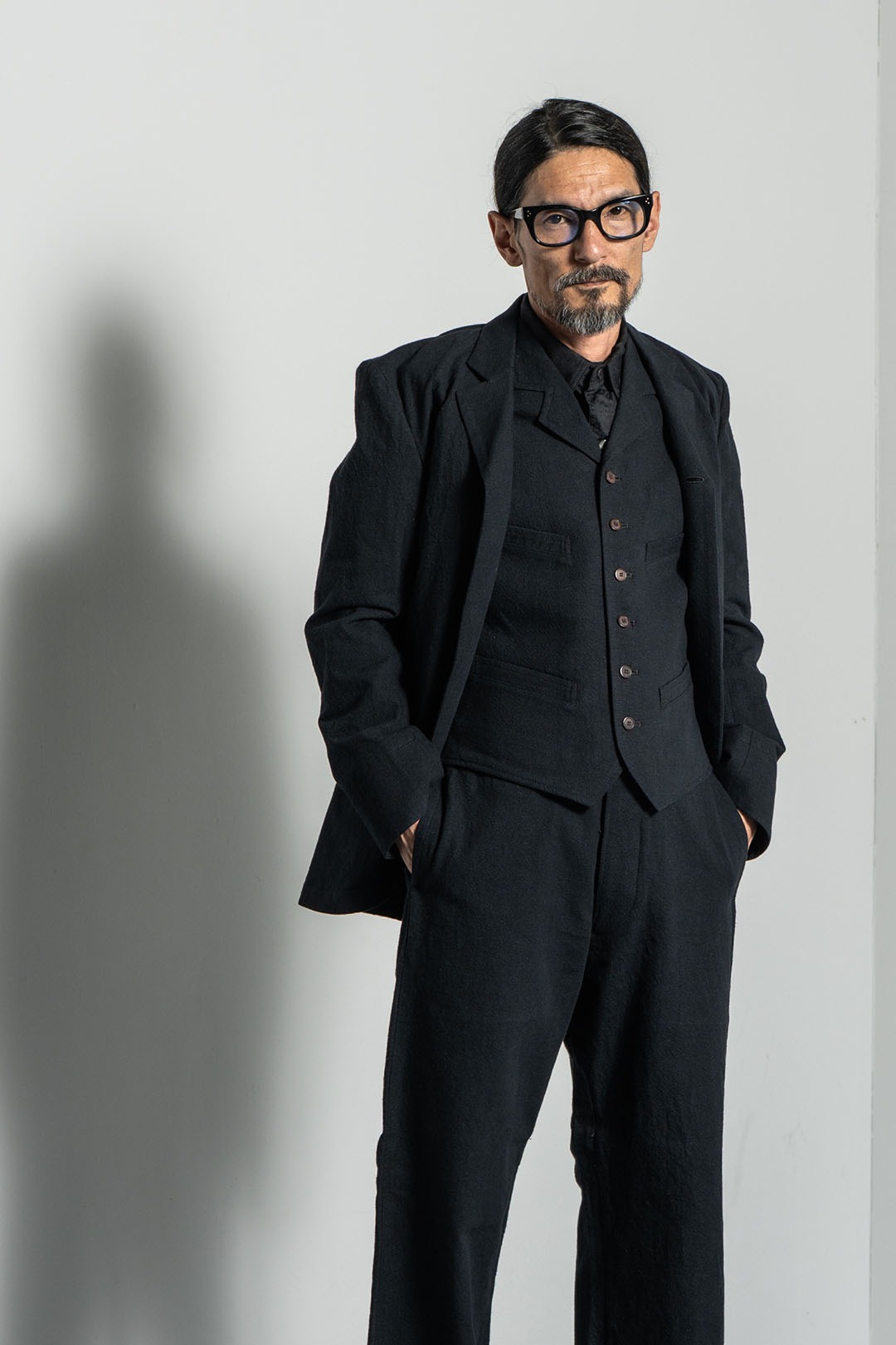 BLACK SIGNの定番スーツとして君臨するバトラー・ジャケットをモディファイした一枚。