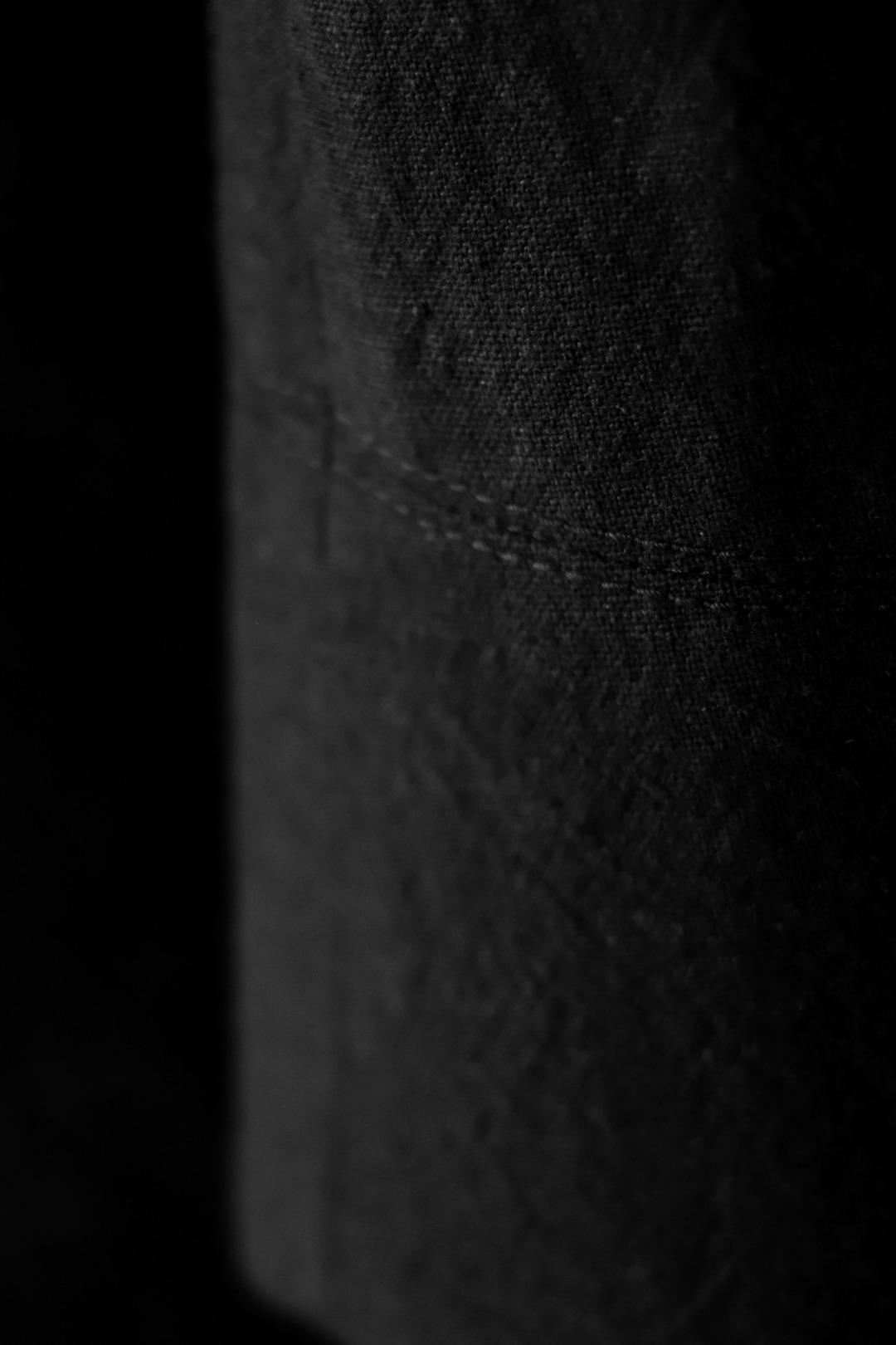 生地の特徴 / ナチュラルで立体的な表面感が特徴のコットン×リネン素材。岡山・児島の工場で仕上げを行い、手染めしたような風合いが再現されております。古(いにしえ)の山河の様な表情と、古布の様な色合い・風合いはとても趣きのある佇まいです。綿麻特有のソフトかつドライな着心地・肌触りも魅力となっております。